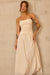 Graceful, minimal, and effortlessly chic — the Bare Grace Dress is designed for moments that matter. Featuring a sleek strapless bodice and soft gathered midi skirt, this piece flows with every step. Made from a softly structured fabric that holds shape while offering gentle movement, it's your go-to for elevated events, modern weddings, or twilight dinners under the stars.