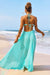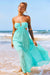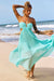 Just as effortless as it is versatile, this wear-everywhere maxi is featured in a billowy, tiered silhouette with a plunging neckline and delicate spaghetti straps that tie at the neck and back for added dimension. Perfect for a beach vacation or a garden party.