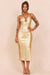 • Gold midi dress.