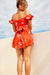 Aperols and days in the sun. Featuring a V neckline with boning, ruffled sleeves, a bow back detail and a ruffled hemline. Style yours with block heels and gold jewellery.