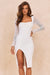 Designed to turn heads, this gorgeous midi from Sage+Paije LUXE collection features eye-catching embellishments and slim-fitting sleeves with a chic small cowl neckline and timeless hem with high slit. It features beaded stretchy fabrication, straight neckline with cowl neck details, long-sleeve style and soft full lining.This beaded midi is perfect for making a statement, no matter the occasion.