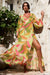 Float into summer with this maxi dress, a vibrant escape wrapped in fluid chiffon. Featuring billowing sleeves, a plunging neckline, and a breezy front slit, this maxi stuns with its painterly leaf print in sun-drenched hues. Perfect for tropical getaways, sunset cocktails, or beachside weddings, it’s your invitation to wander beautifully.